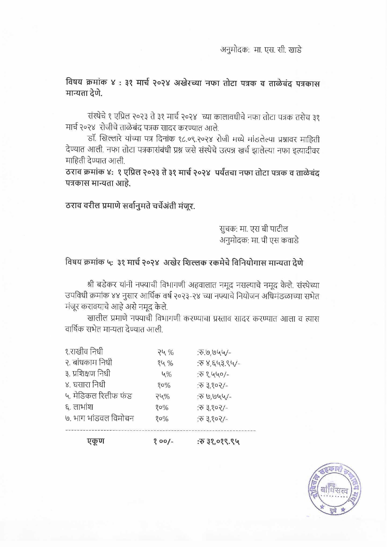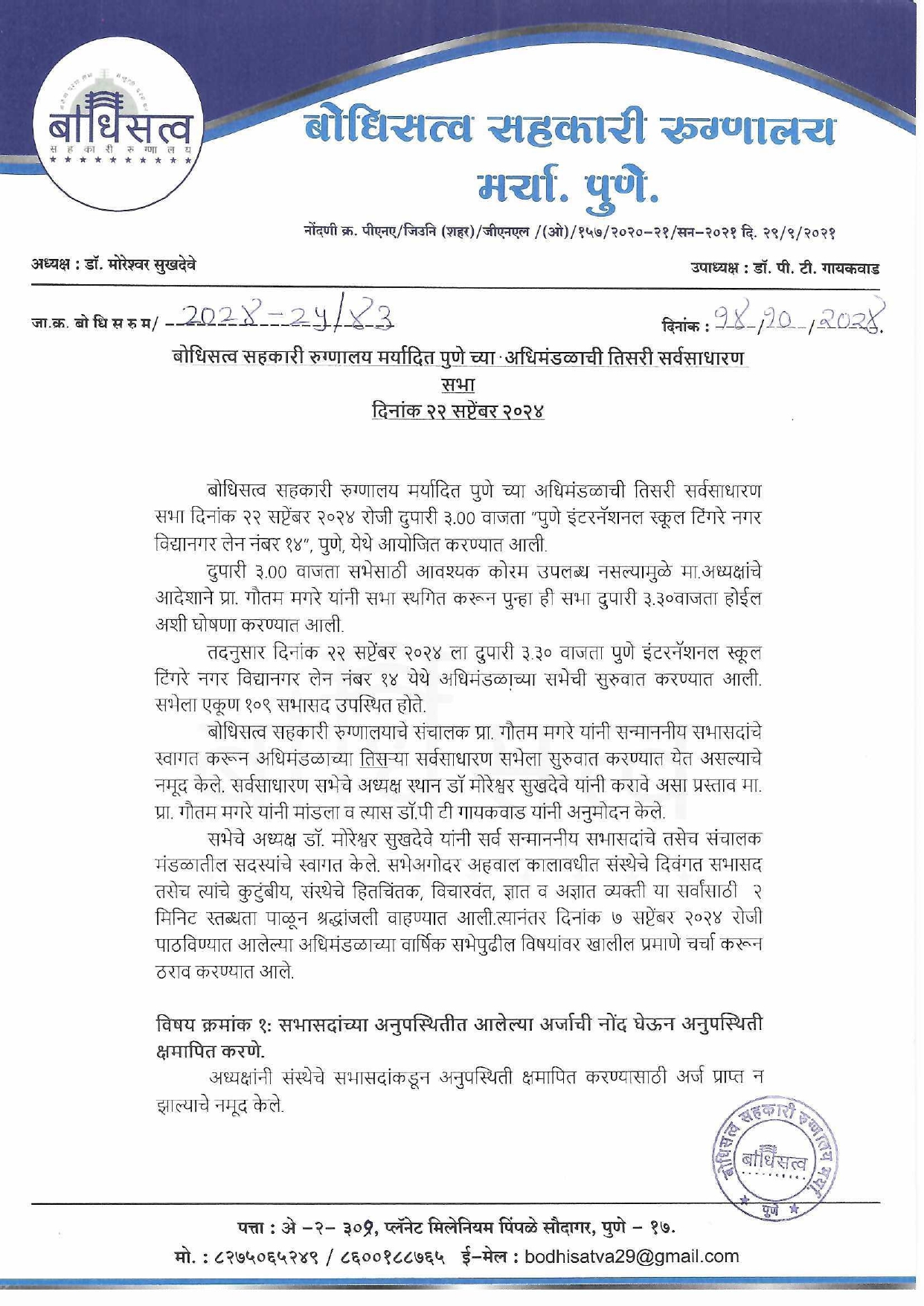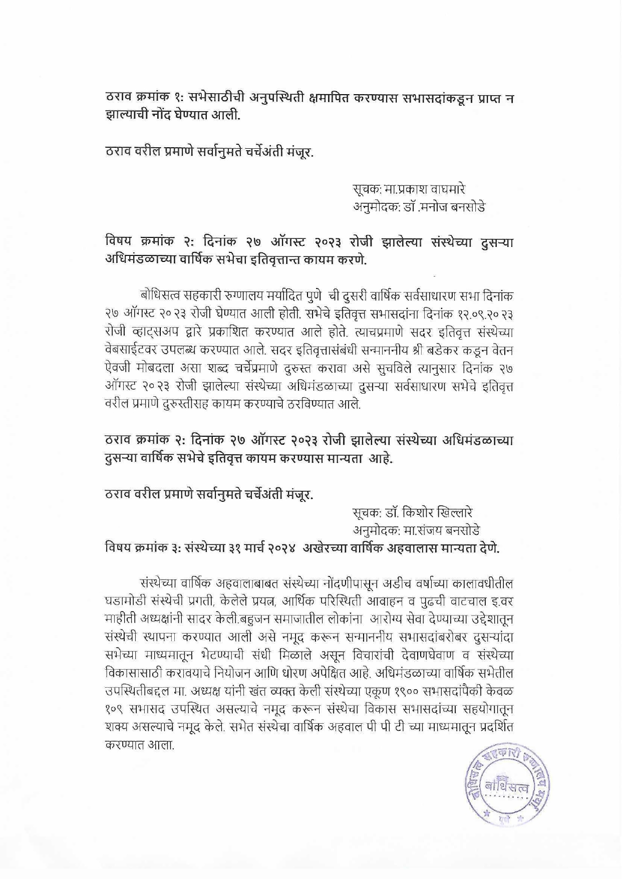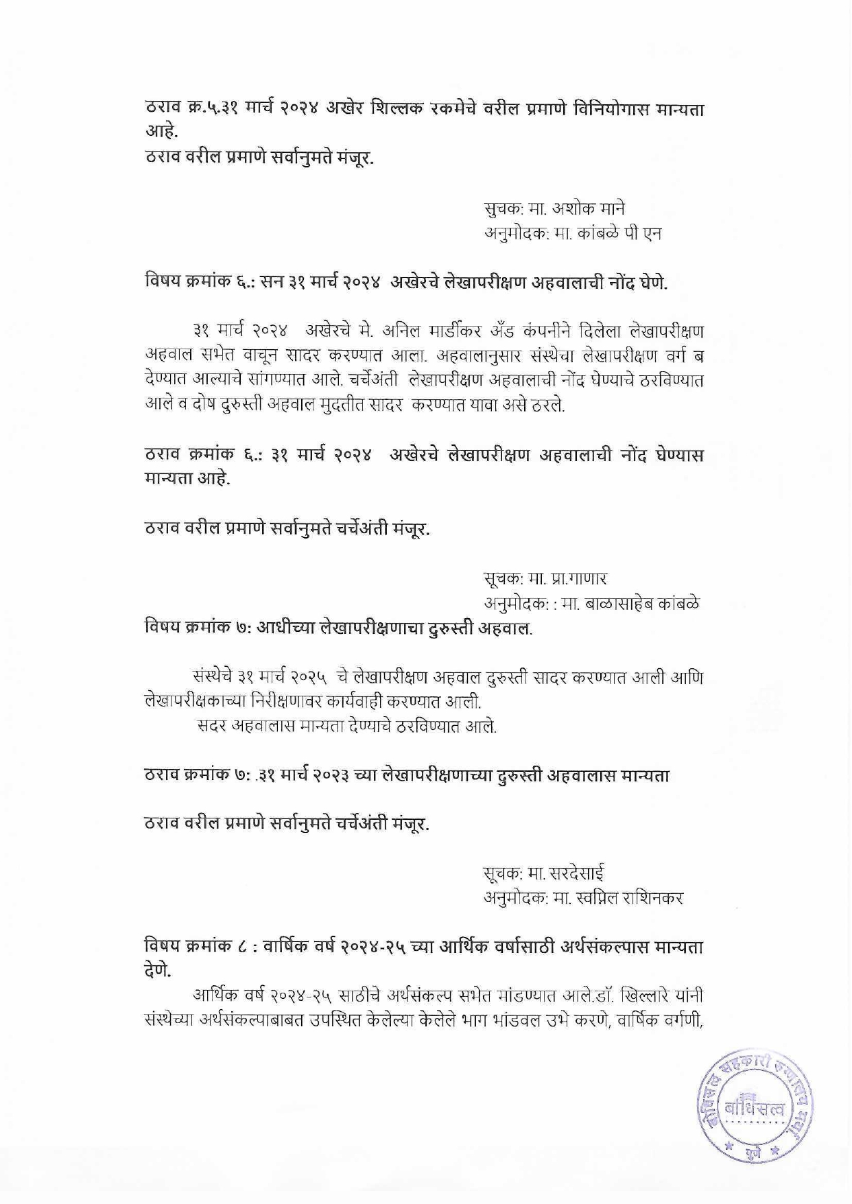 1. चौथी वार्षिक सर्वसाधारण सभेचे एतिवृत्त (०५.०९.२०२५)