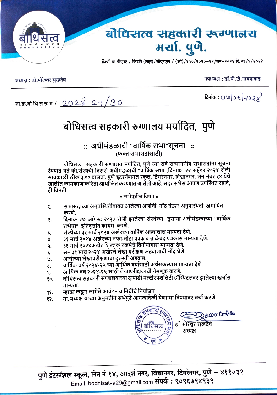 या महत्त्वाच्या बैठकीला सर्व सन्माननीय सभासदांनी उपस्थित रहावे,हि नम्र विनंती.
