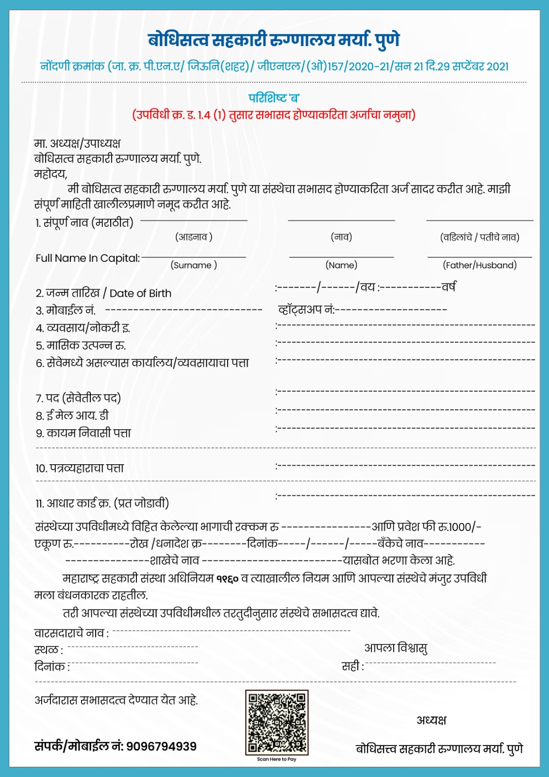 6.सभासद होण्याकरिता अर्जाचा नमुना